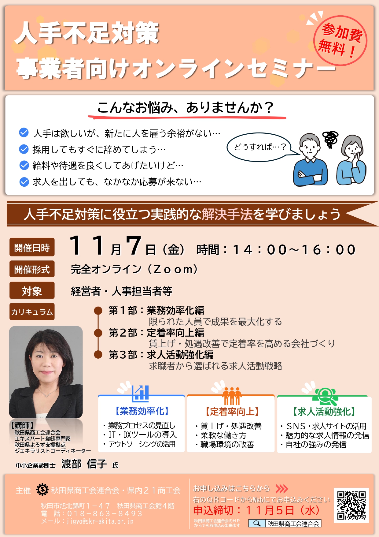 2025/10/21【人手不足対策】事業者向けオンラインセミナーの開催について