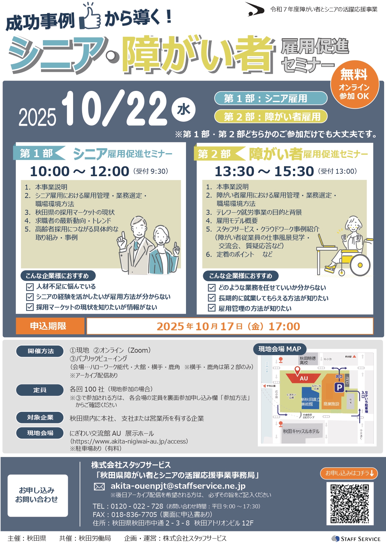 - 2025/10/03【秋田県主催】シニア・障がい者雇用促進セミナー(企業向け)の開催について