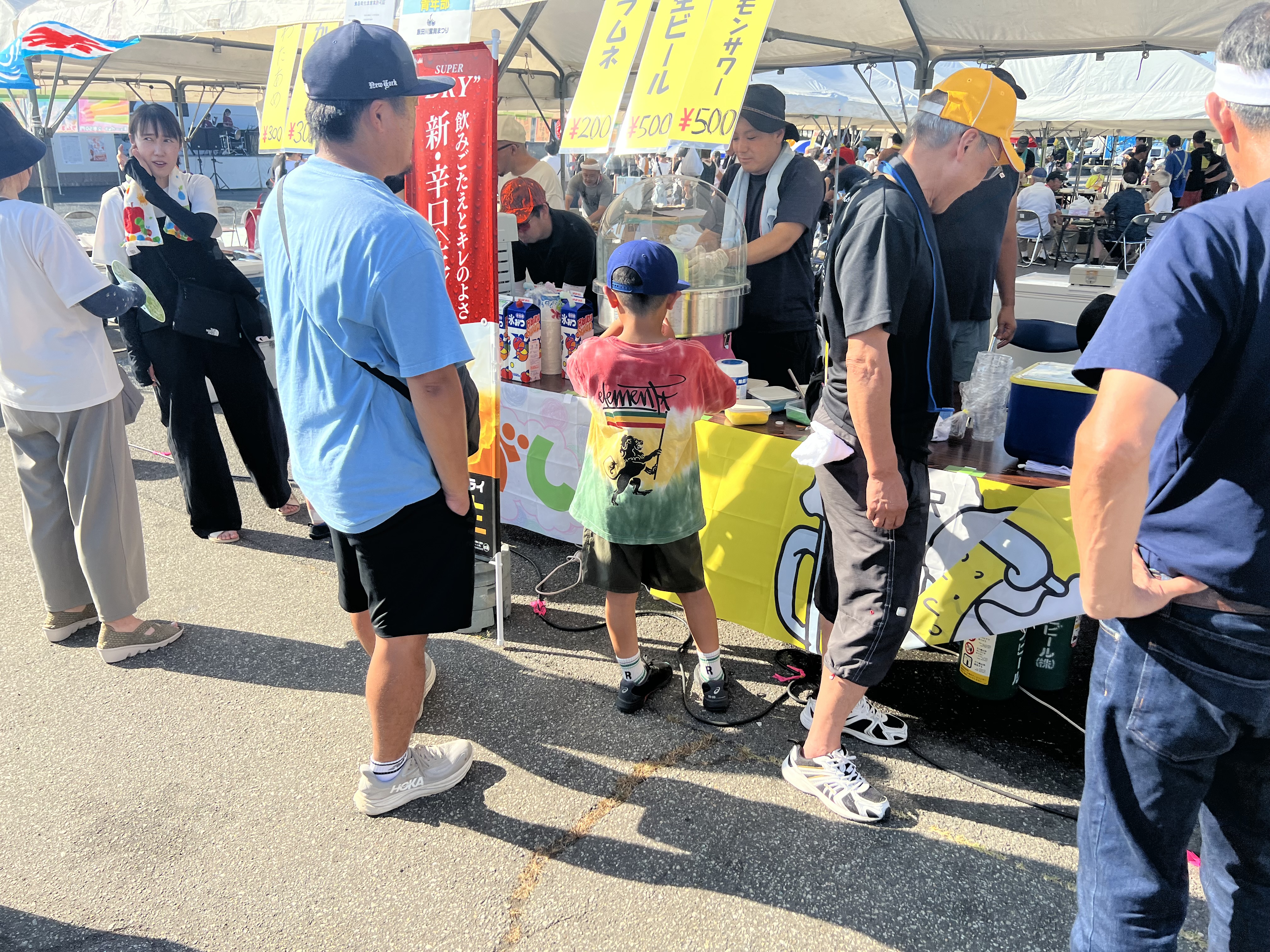 晴天に恵まれ、多くの来場者で賑わう中、私たちのテントでは生ビール・レモンサワー・ラムネ・かき氷・わたあめを販売しました。